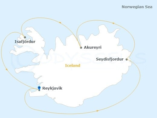 This Iceland-focused itinerary includes birding in Reykjavík, Seyðisfjörður, Akureyri, and Ísafjörður, providing access to a wide range of subarctic habitats. Birding excursions explore coastal cliffs, fjords, wetlands, tundra edges, and northern shoreline environments characteristic of Iceland’s unique landscape. Local guides provide insight into seasonal birdlife and regional conditions, and excursions are carefully planned to fit within the cruise schedule. This itinerary offers a distinctive birding experience shaped by Iceland’s geography, climate, and dramatic natural setting.